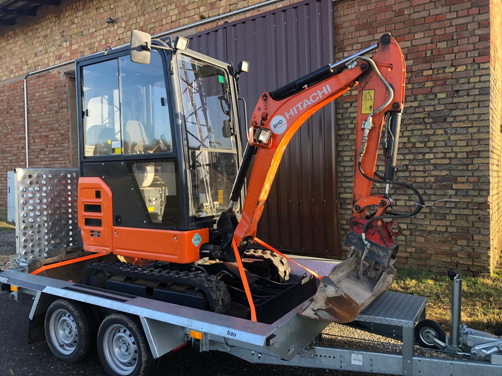 Der Bagger kann auch mit Fahrer für Tiefbau-Arbeiten gemietet werden.