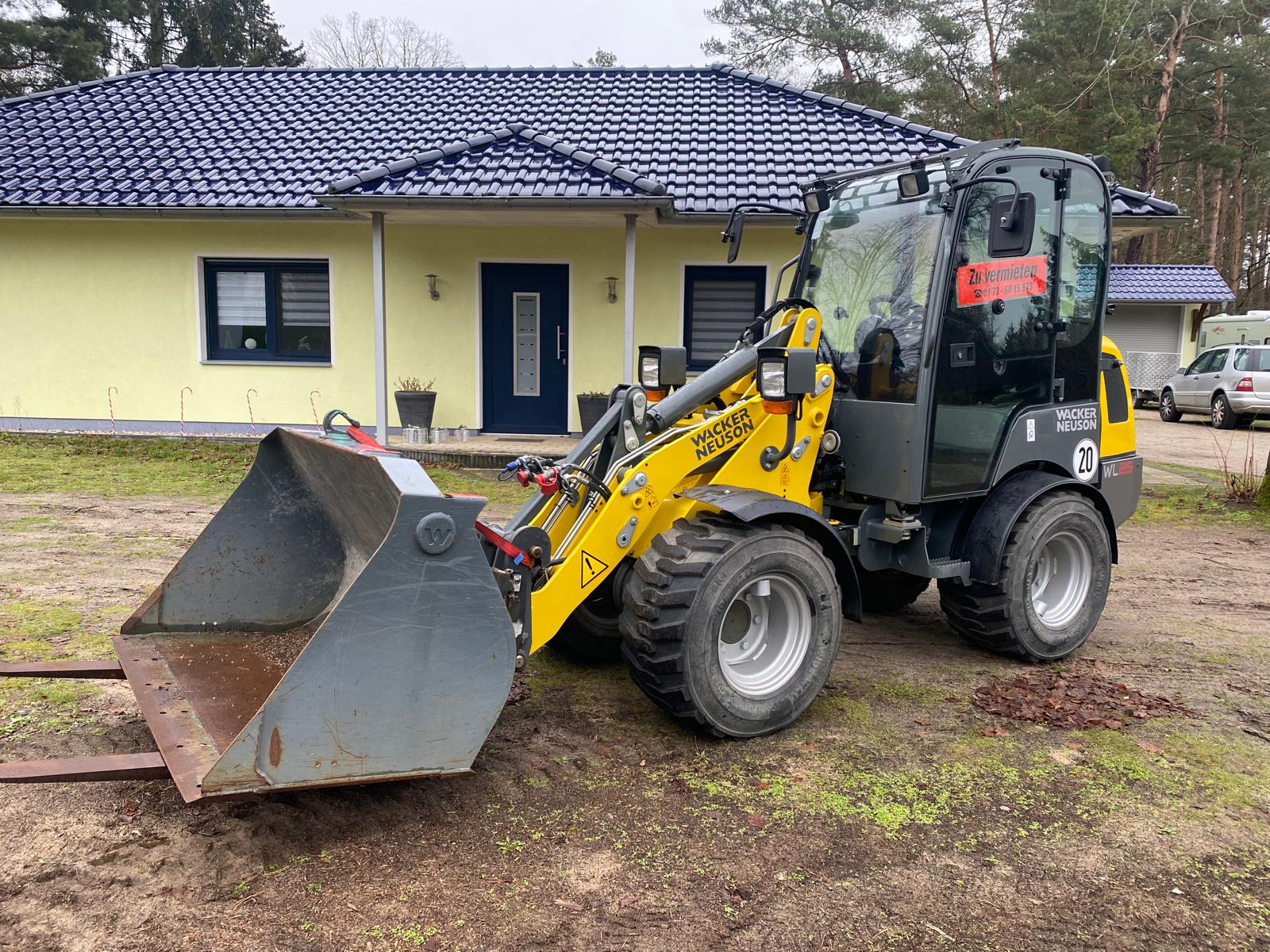 Der Radlader kann auch mit Fahrer für Arbeiten gemietet werden.